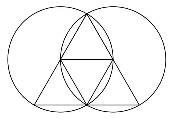 Vesica Piscis přirozeně vytváří rovnostranný trojúhelník.