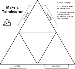 Tyto trojúhelníky se skládají dovnitř k sobě a tvoří čtyřstěn, první nejjednodušší a nejzákladnější platonickou pevnou látku.