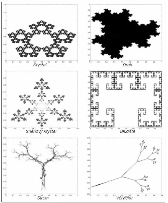 Příklady dalších fraktálů vzniklých algoritmem IFS