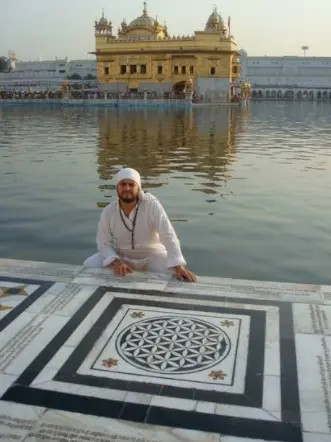Indie - Zlatý chrám, na podlaze z mramoru, vnější strana chrámu