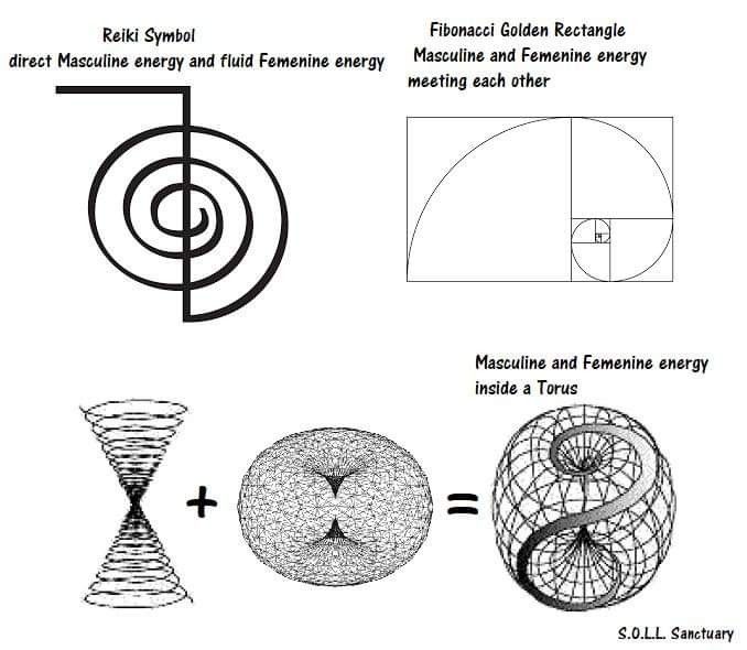 - Torus ukazuje dynamický tok energie v uzavřeném cyklu, zatímco pentagram vyjadřuje pevné proporce a symetrii, která harmonizuje tento tok.