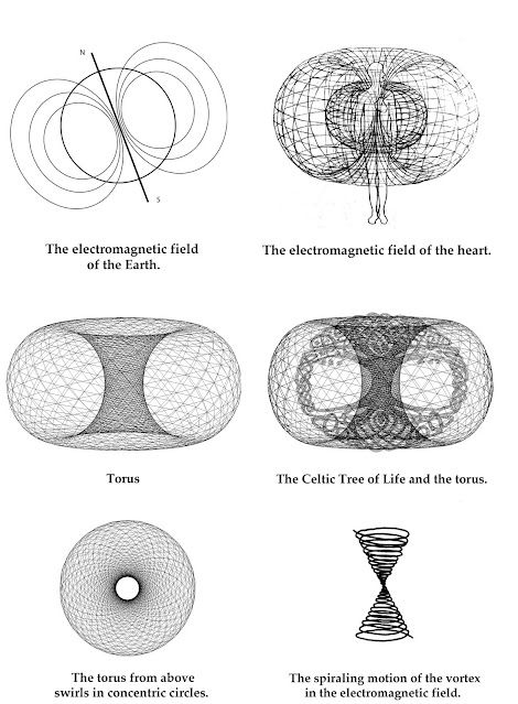 Oba představují průřezy kompletním sférickým/toroidním energetickým polem, ale to s kruhy je statičtější než spirální toroidní pole phi.